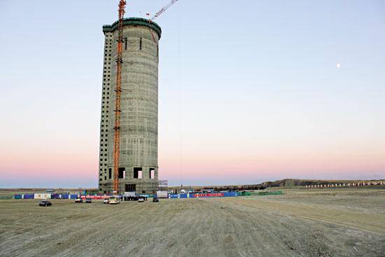 由于尿素造粒塔造粒工藝需求,其塔頂高度普遍 較高,部分塔頂除塵裝置排放口距地面超過100m,且由于塔形結(jié)構(gòu),其頂部平臺空間小,檢修不便、風(fēng) 力載荷大。造粒工藝?yán)鋮s風(fēng)量較大,其每1萬t的年產(chǎn)能,對應(yīng)冷卻煙氣風(fēng)量為1.5萬~ 2.0萬m3/h。一 座40萬t/a規(guī)模的尿素造粒塔高溫天氣下冷卻風(fēng)量達(dá) 到80萬m3/h,較端高溫高濕情況下其冷卻風(fēng)量還可能更高。