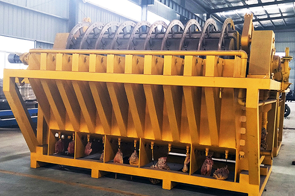 陶瓷過(guò)濾機(jī)是礦山特別是選礦廠采用浮選或磁選技術(shù)常用的一種高效節(jié)能的過(guò)濾設(shè)備。陶瓷過(guò)濾機(jī)分為吸漿區(qū)、干燥區(qū)、卸料區(qū)和反沖洗區(qū)。當(dāng)陶瓷過(guò)濾機(jī)開(kāi)始工作時(shí),濾板浸入漿料槽中。在真空作用下,懸浮在漿槽中的精礦顆粒被吸附在濾板上,固體物料被截留在濾板上,濾液通過(guò)濾板。循環(huán)(多余部分也會(huì)排出);濾板離開(kāi)漿槽進(jìn)入干燥區(qū),濾餅在真空作用下繼續(xù)脫水;干燥卸料區(qū)裝有刮板,用于刮除濾餅;卸料完成,濾板進(jìn)入反沖洗區(qū),過(guò)濾后的水通過(guò)分配頭進(jìn)入濾板,反沖洗濾板以洗掉堵塞在微孔中的顆粒,完成一個(gè)過(guò)濾操作循環(huán)。