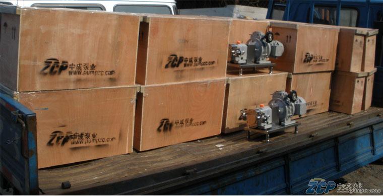 圖中是正在裝車(chē)等待發(fā)往廣州的一批RP型不銹鋼轉(zhuǎn)子泵。